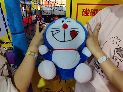 蹦沙卡拉卡,蹦沙卡拉卡,全場響起了音樂,原來是有獎競答活動,優(yōu)勝者可以選擇在全場甚至于整個倉庫選擇自己最喜愛的娃娃將心愛的它帶回家,一輪輪的比拼,我們的道婷小同志過五關斬六將,終于進入了總決賽,最后激動人心的時刻到來了,冠軍爭奪大PK,咦一一,沒想到這么激烈的游戲最后以石頭剪刀布的方式落下帷幕,而冠軍當然就是我們幸運無比的道婷小同志,她選擇了最愛的哆啦A夢(晚上她一定能抱著她睡個好覺)哈哈哈哈